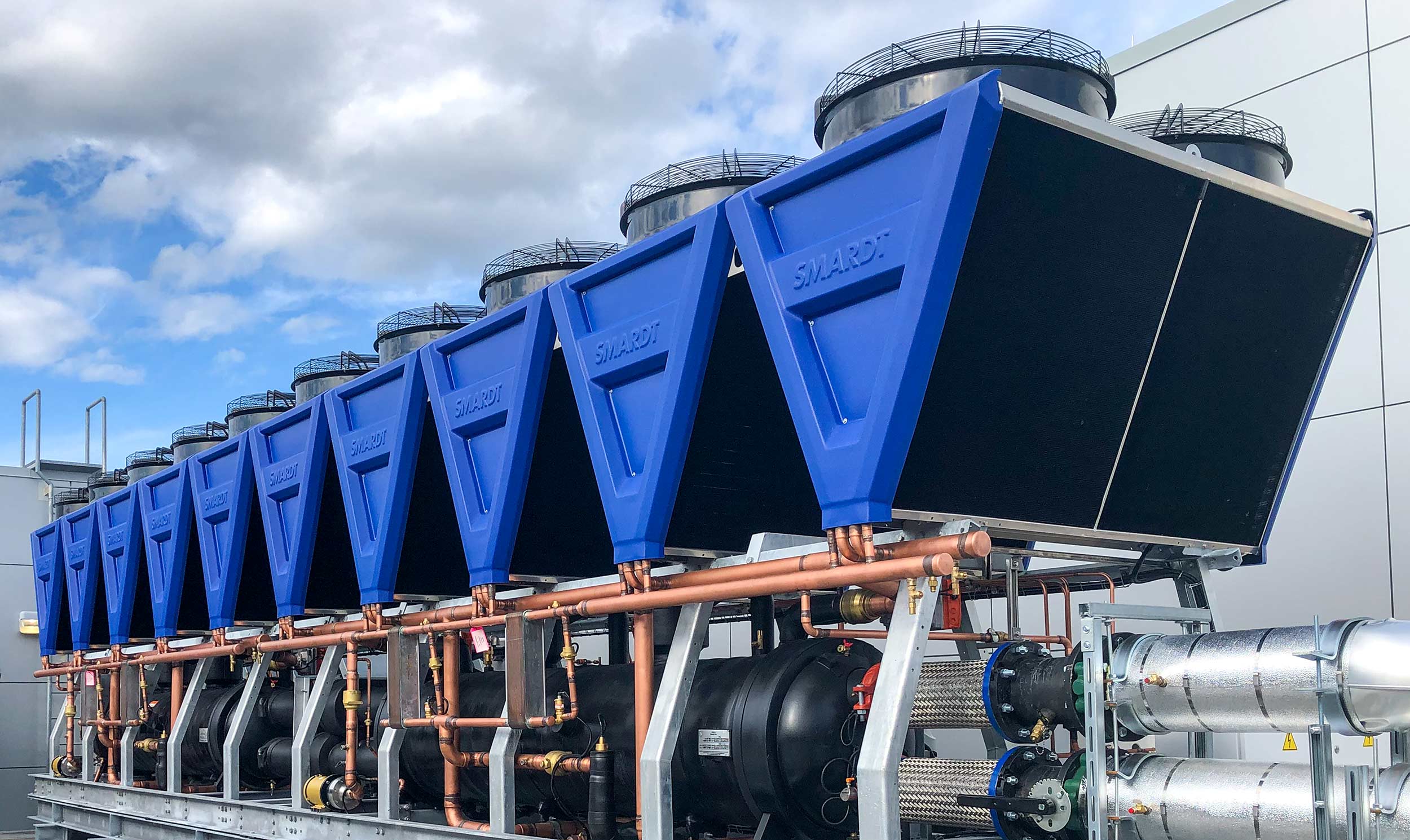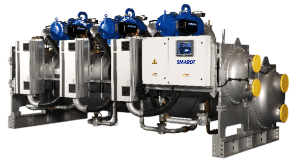 Smardt’s V-Class range brings new levels of efficiency, reliability and turn-down to the large water-cooled chiller market – now up to 3600 TR (12.6MW).